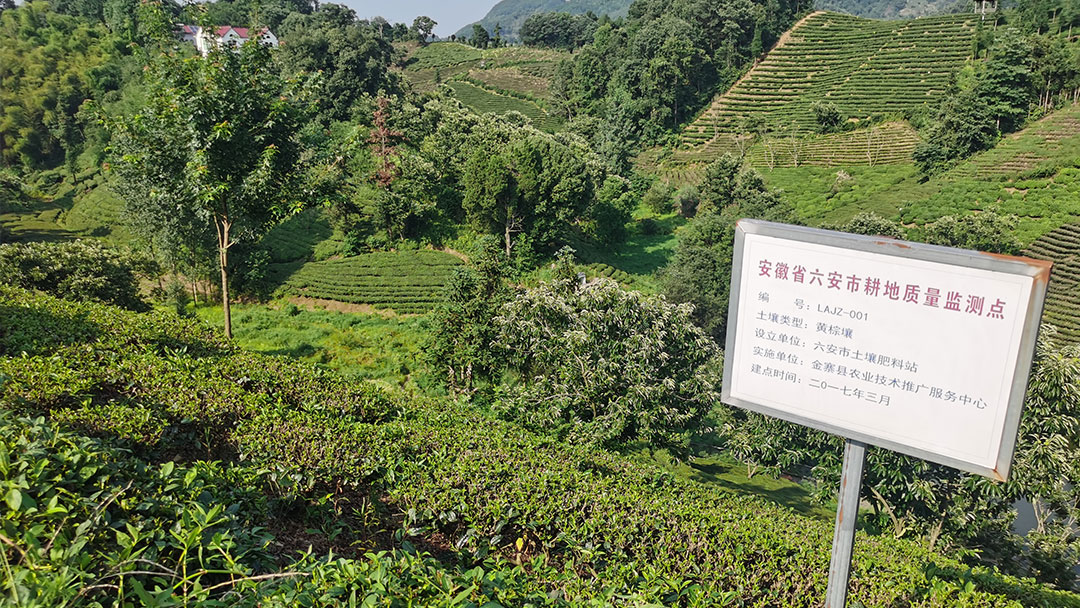 【概要描述】六安瓜片原产地的一角。园内自然风光旖旎,水天一色,纵使已入冬季,茶谷中依旧秋色未尽,茶园葱翠,远山如黛,比春日里更多了一份静谧的美。